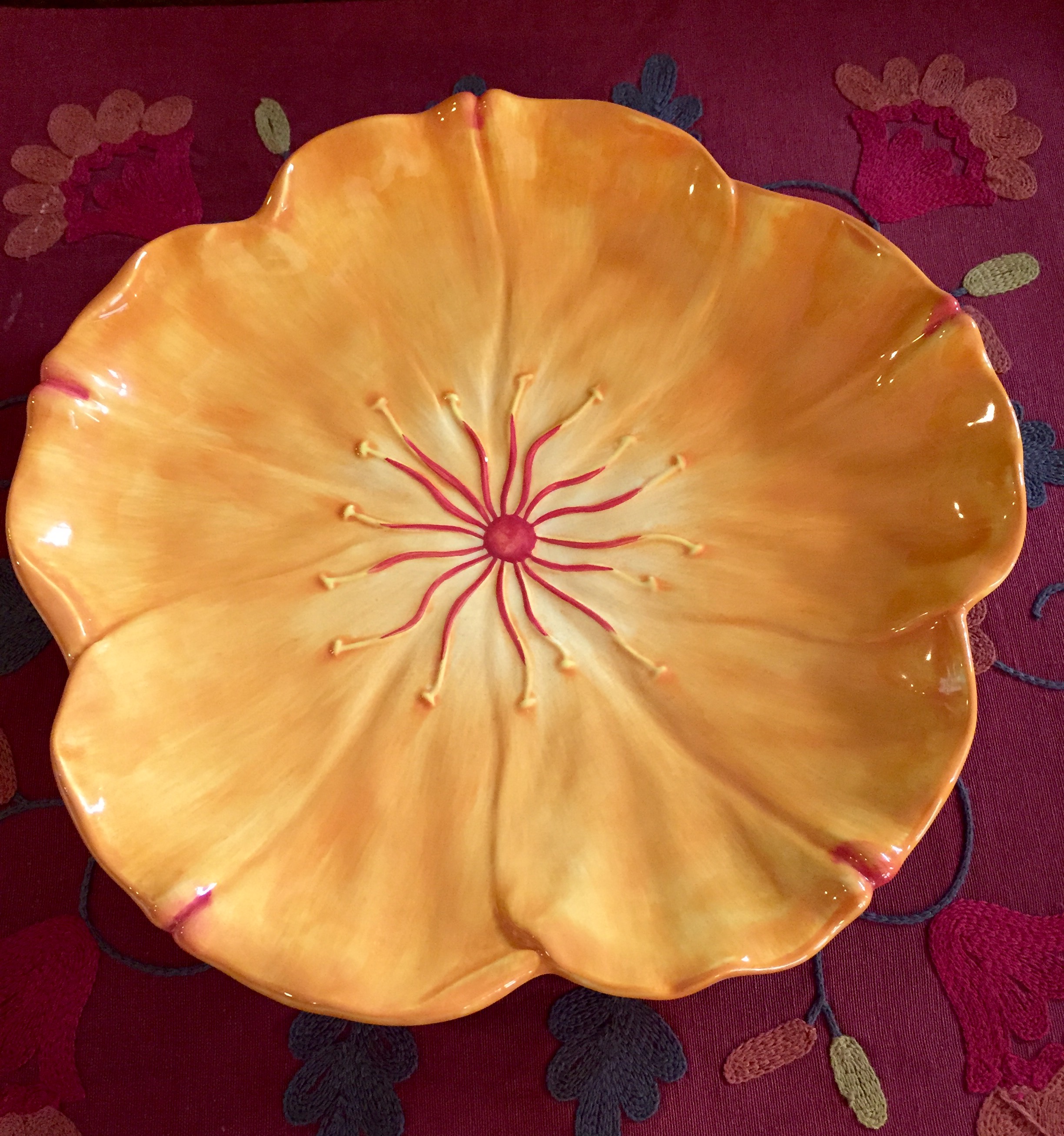If you want your family to eat more salads, then create a colorful and inviting presentation. The plate I used was from Arte Florum Inc., and it was designed in California. I purchased four of these orange poppy salad plates plates at a discount store for $6.99 each. The regular price was $14.00 a piece.
